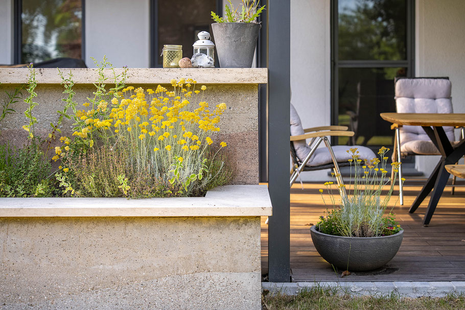 inklusive Gestaltungskonzept, Ideenskizze und Empfehlungen für Materialien, Pflanzen und Gestaltungselemente.