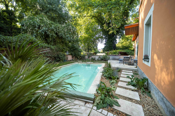Zwischen alten Bäumen und neuen Ideen entstand hier ein Rückzugsort voller Leichtigkeit und Struktur. Stauden in warmen Tönen umrahmen den Pool, Natursteinmauern schaffen Intimität, und eine Feuerstelle lädt zu unvergesslichen Abenden ein. Ein Garten, der Natur und Ästhetik miteinander verbindet.